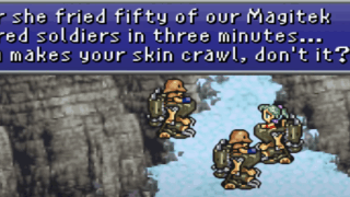 モーグリの助けを借りてティナ救出後、ナルシェの街に入ろうとすると…この"hightail it"を知らなかったです…。勉強になりますね。セリフIt’s not safe here. We’d better hightail it south...