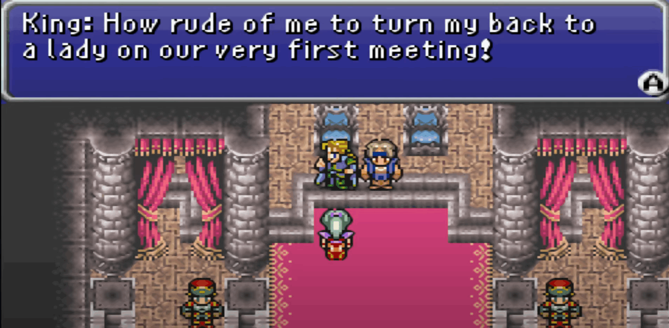 ティナがフィガロ城にてエドガーと初対面するシーンでのエドガーのセリフ。エドガーらしいセリフで初対面の女性(女子?)相手に気取っている雰囲気をこのセリフから掴みたいところです。