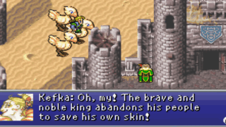 FF フィガロ脱出 フィガロを脱出するときのケフカの悪意と皮肉に満ちたセリフが面白いです。そして形成逆転するフィガロ大臣のセリフ。動詞として使うwitnessが雰囲気が出るので好きです。この場面は、帝国兵がエドガー(Figaro王)を皮肉るところで、続いてエド... 2025.10.23 FFFF6ゲームプレイゲーム英語