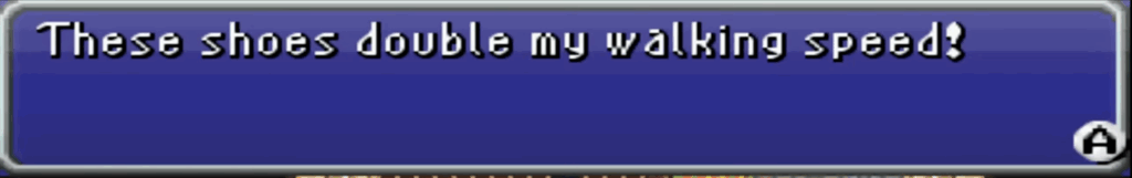 • ここではゲーム内効果の説明として、「スピードアップ靴」を面白く説明している。