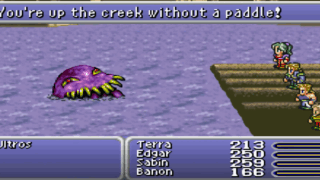 FF オルトロス🐙初登場 このwithout a paddleはどこかで見た気がする表現でしたが、すっかり忘れてました。原作とは大きく違う台詞なので、ローカライズの素晴らしさも伺えてとても勉強になるセリフです。🗨️ セリフYou’re up the creek wi... 2025.11.07 FFFF6ゲームプレイゲーム英語